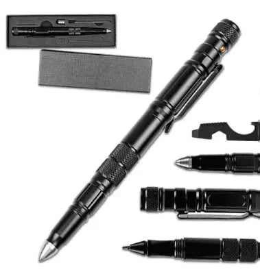 Lapicero 8 en 1 será útil para escribir, iluminar áreas oscuras, abrir botellas, o incluso romper vidrio en caso de emergencia.