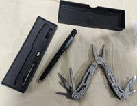 El kit incluye el Alicate 24 en 1 y el Lapicero 8 en 1, dos herramientas multifuncionales que te permiten resolver tareas cotidianas, emergencias o actividades al aire libre.