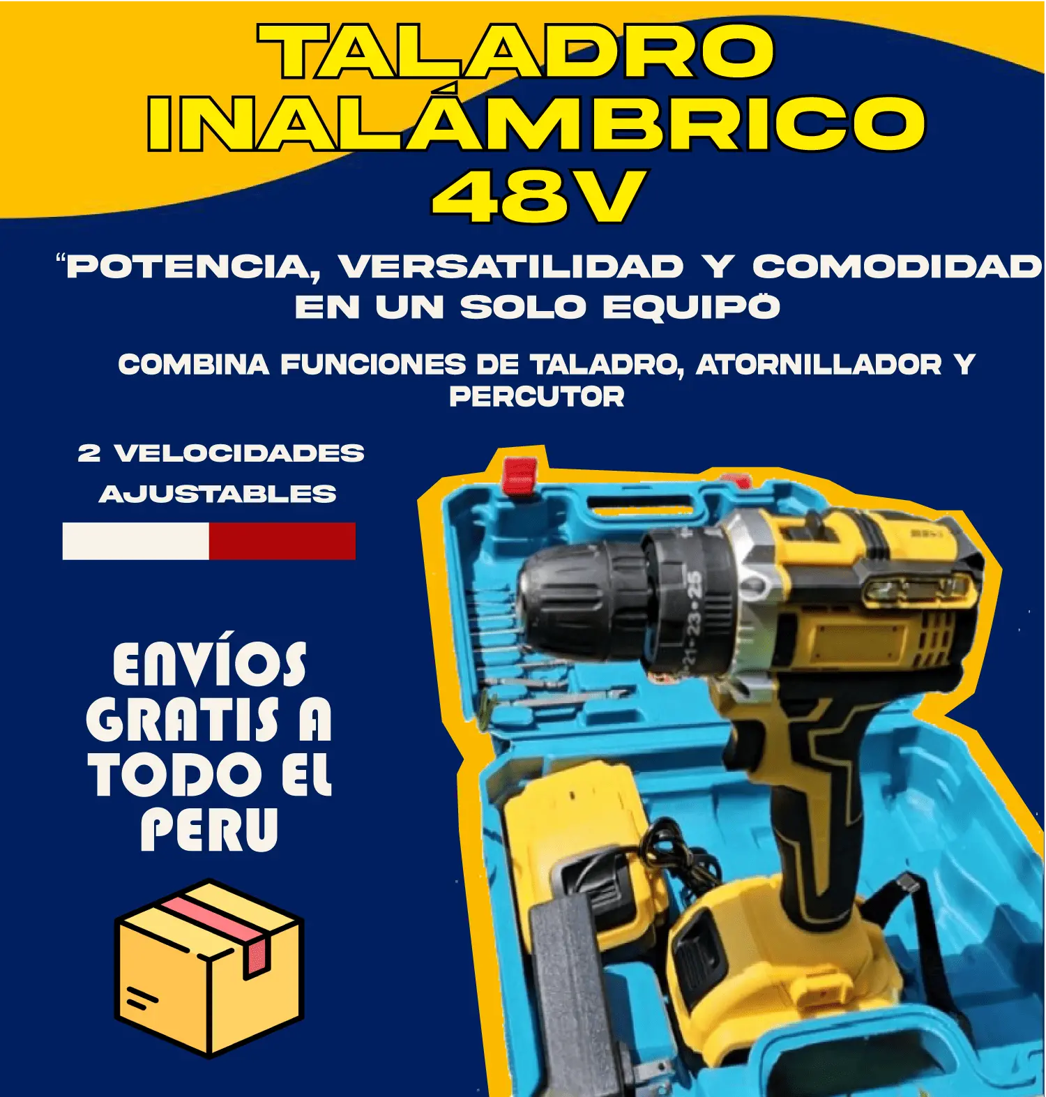 ¡Ya no más! El Taladro Inalámbrico 48V con doble batería de litio ha llegado para darte el poder, autonomía y versatilidad que necesitas, ya sea en casa o en tus proyectos profesionales.