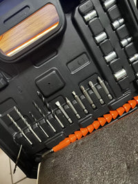 - Incluye maletín organizador con brocas, puntas y cargador.